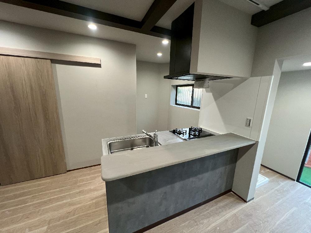 キッチン内部はフロアタイルでアクセントをだしています。 |